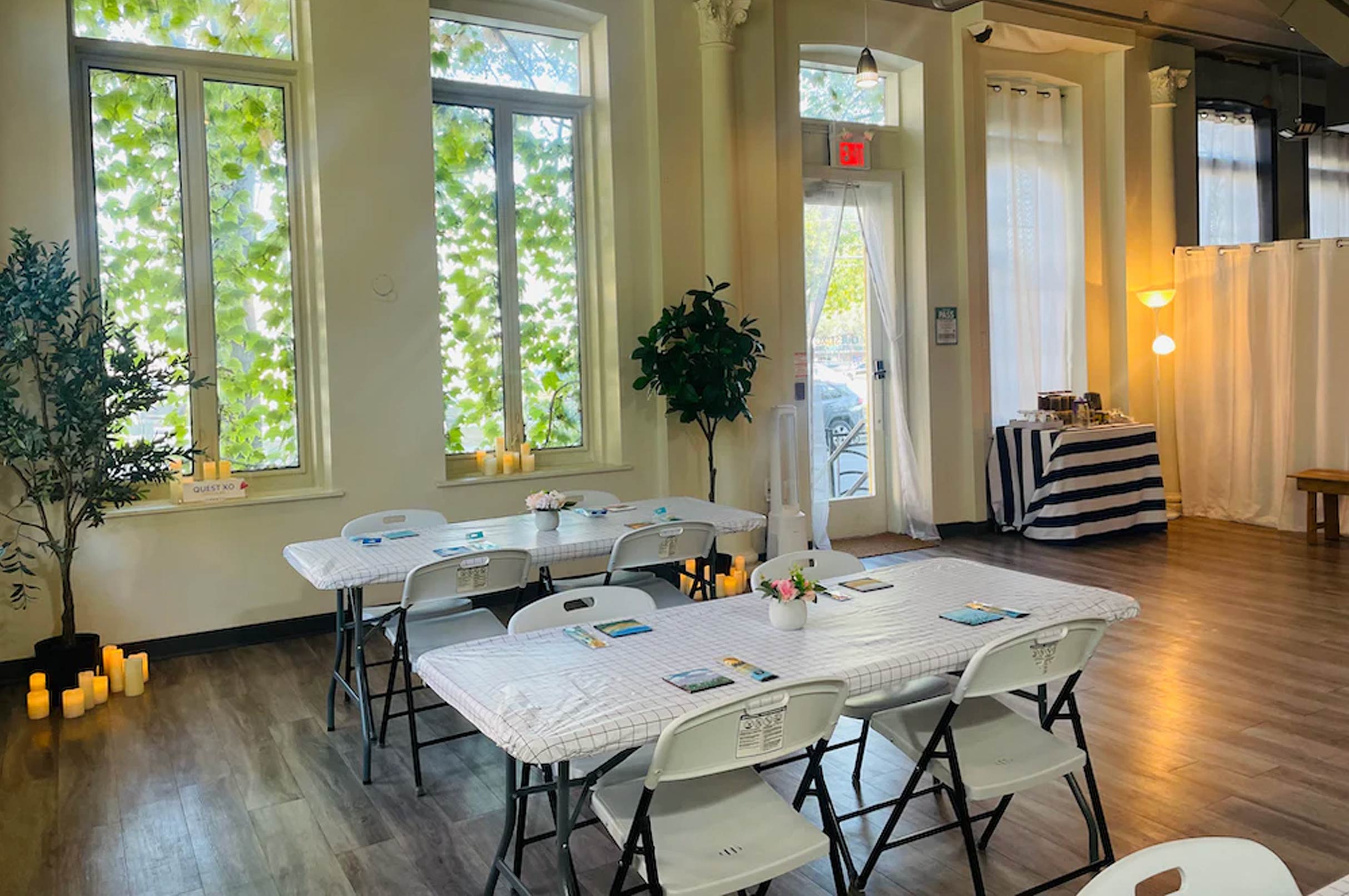 We can provide tables, chairs, TV, microphone, speaker (and more) as part of your booking. We'll take care of the basics, so you can focus on creating the perfect event experience for your guests.