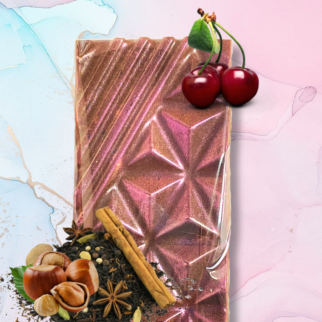 Made with my own Mama in mind, this decadent bar is made with luscious milk chocolate infused with chai and speckled with toasted hazelnuts and dried sour cherries.